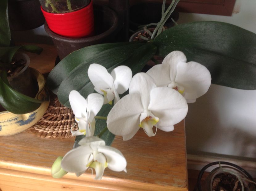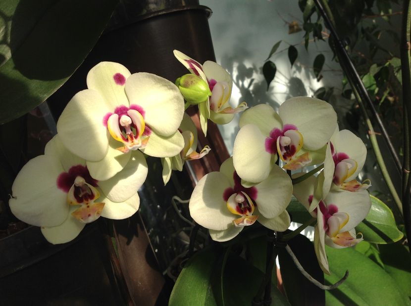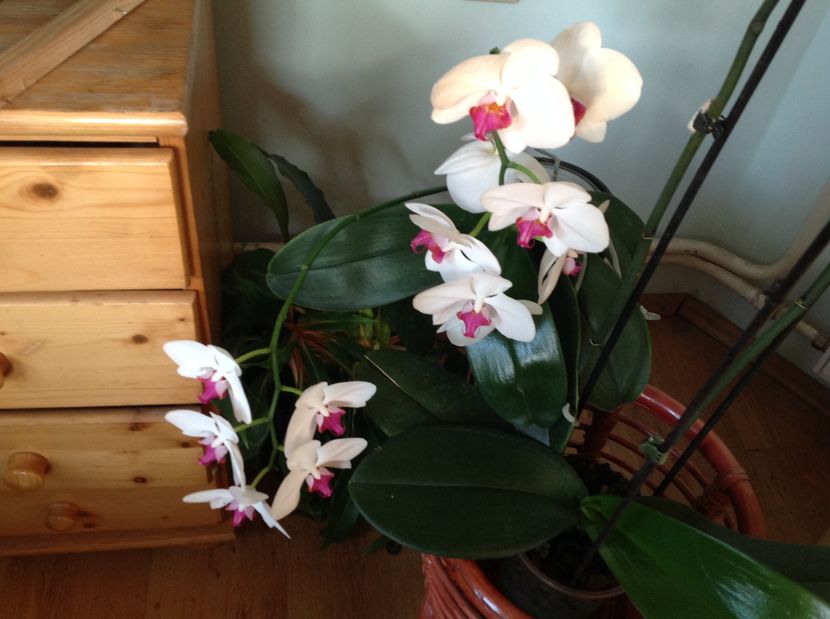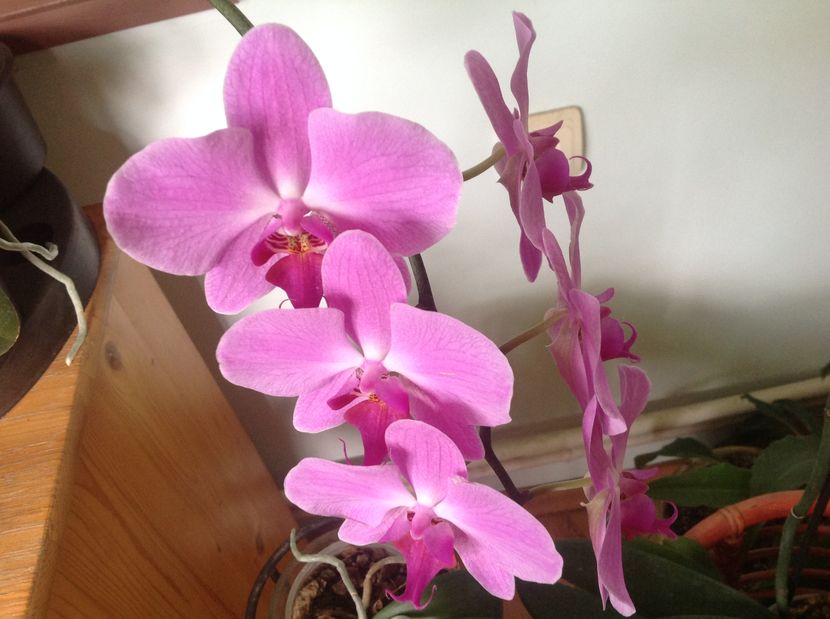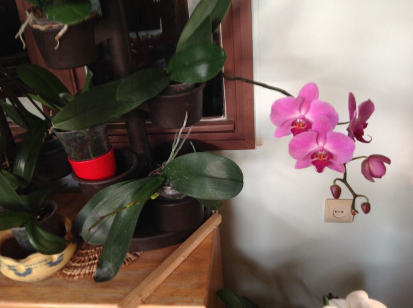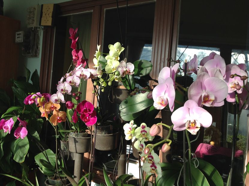 Intr un hol . Orhideele nu ocupa mult spațiu si sant foarte generoase .